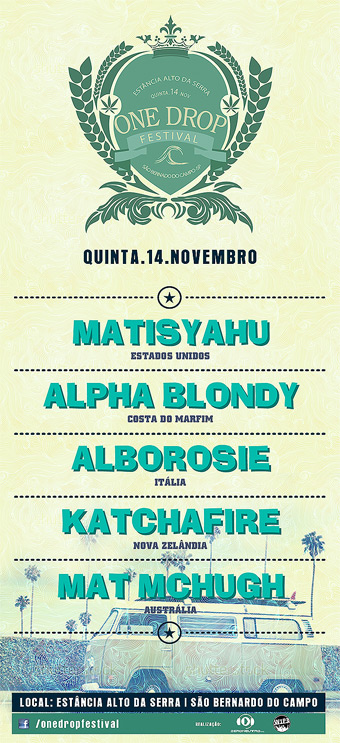 Com um line-up de peso, o festival traz shows internacionais como Matisyahu, artista de origem judaica que despertou o interesse do mundo inteiro ao levar suas mensagens ao som de reggae, rock e hip hop. Para emocionar os fãs do reggae de raiz, teremos a honra de contar com o show da lenda viva, Alpha Blondy, autor de um dos maiores hits do reggae mundial, “Jerusalém”.